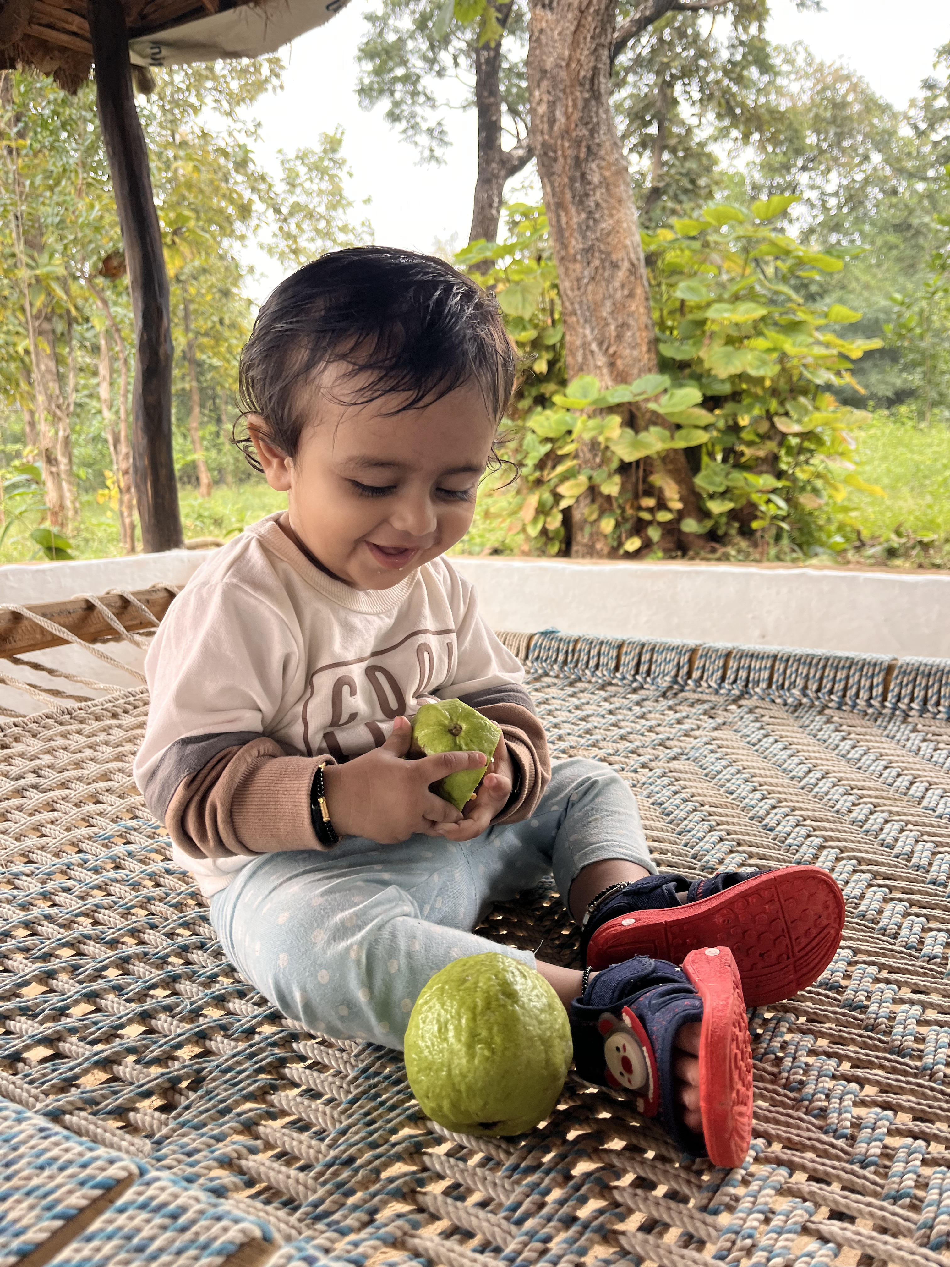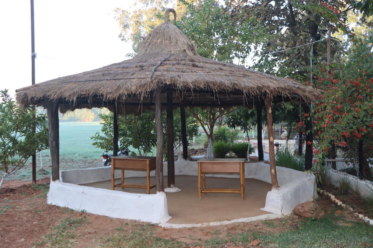 Our Mahua Deluxe Villas feature spacious interiors with two queen-sized beds and panoramic farmhouse views in the front, while lush trees and fruit plants surround the rear. Beautiful creepers gracefully cover the roof, enhancing the natural charm. Designed for openness and comfort, Mahua offers a serene stay blending farm, jungle, and orchard landscapes.